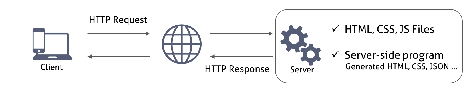 서버와 브라우저와의 통신에 의한 것인데, 서버는 요청받은 페이지(HTML)를 반환한다. 이때 HTML에서 로드하는 CSS, JavaScript 파일들도 같이 반환된다. 클라이언트의 요청에 따라서 서버는 정적인 파일, 서버 사이드 프로그램이 만드는 파일, 데이터를 반환할 수도 있다. 서버로 부터 웹페이지가 반환되면 클라이언트(브라우저)는 이를 렌더링하여 화면에 표시한다.