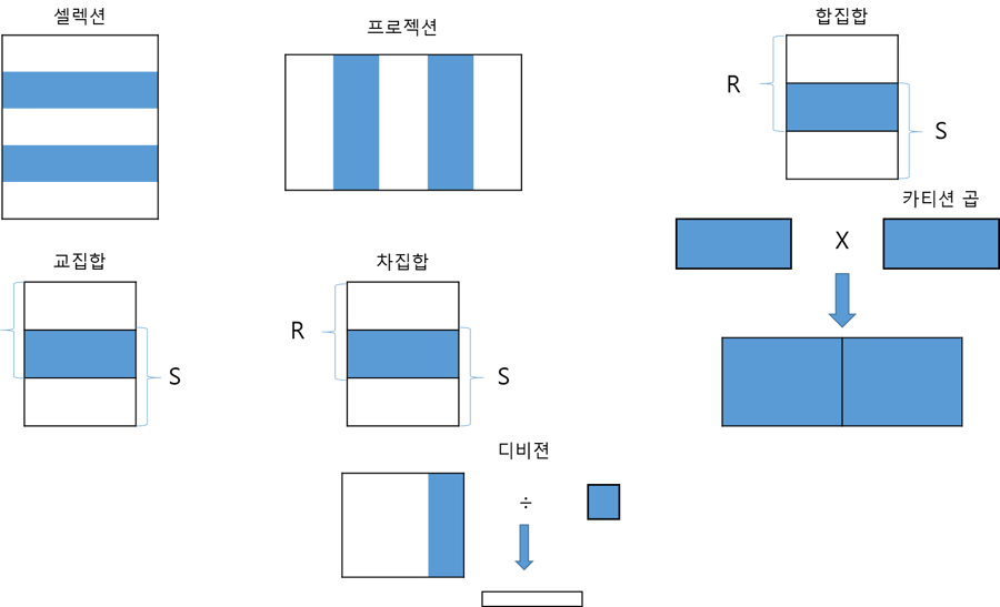 관계 대수는 기본적인 연산자들의 집합으로 이루어짐.