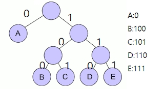 루트노드로부터의 경로에서 각 가지에 코드워드를 부여한다.