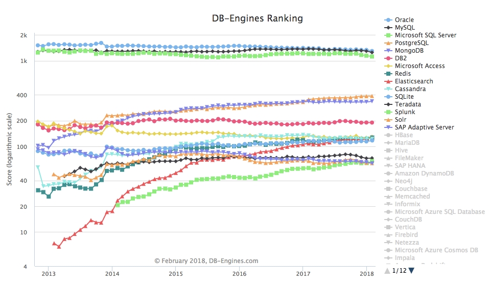 https://db-engines.com/en/ranking ์์ ๋ฐ์ดํฐ ๋ฒ ์ด์ค ranking์ ๋ณผ ์ ์๋ค. ํ์ฌ RDBMS ๊ด๊ณํ๋ฐ์ดํฐ ๋ฒ ์ด์ค๊ฐ ์์ฅ์์ ์ฐจ์งํ๋ ๋น์จ์ด ๋์ ๊ฒ์ ๋ณผ ์ ์๋ค. ์ฐ์ ๊ด๊ณํ ๋ฐ์ดํฐ๋ฒ ์ด์ค ์ค ํ๊ฐ๋ฅผ ๋จผ์ ๋ฐฐ์ฐ๊ณ , ๊ทธ ์ดํ์ nosql(๊ด๊ณํ๋ฐ์ดํฐ๋ฒ ์ด์ค๊ฐ ์๋ ๊ฒ)์ ๋ฐฐ์ฐ๋ ๊ฒ์ ์ถ์ฒํ๋ค.
