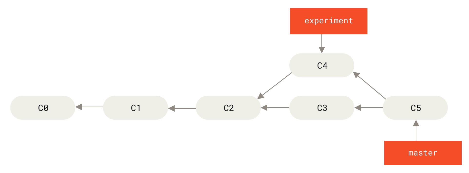 ๋ค์ ๊ทธ๋ฆผ์ experiment์ master branch๊ฐ mergeํ์ฌ ์๋ก์ด commit์ด ์๊ธด ๊ฒฝ์ฐ์ด๋ค.